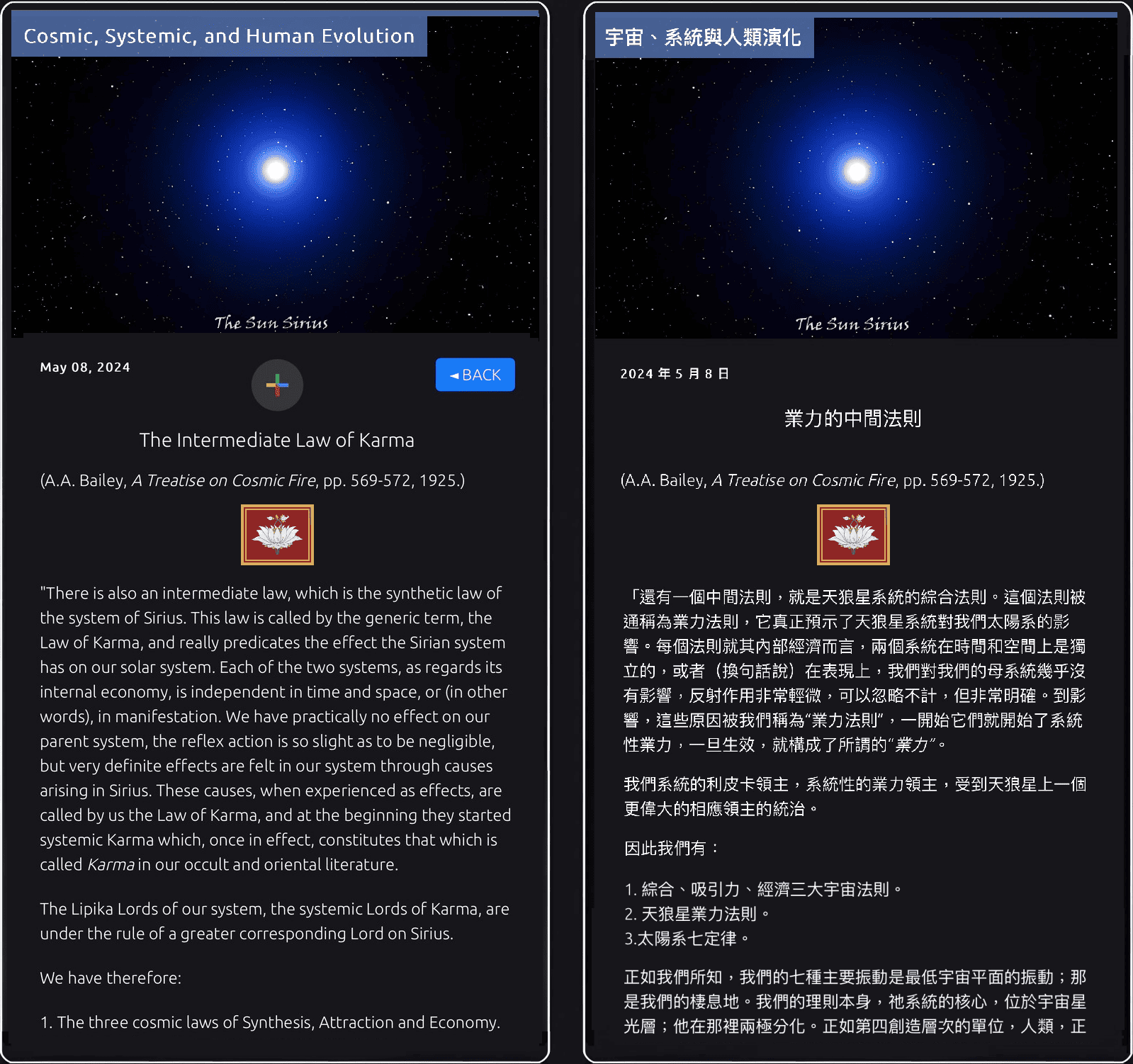 In addition, for articles extracted from the books of the Lucis Trust and the Agni Yoga Society, a link has been envisaged to allow the reader to continue reading free of charge online on their respective websites.