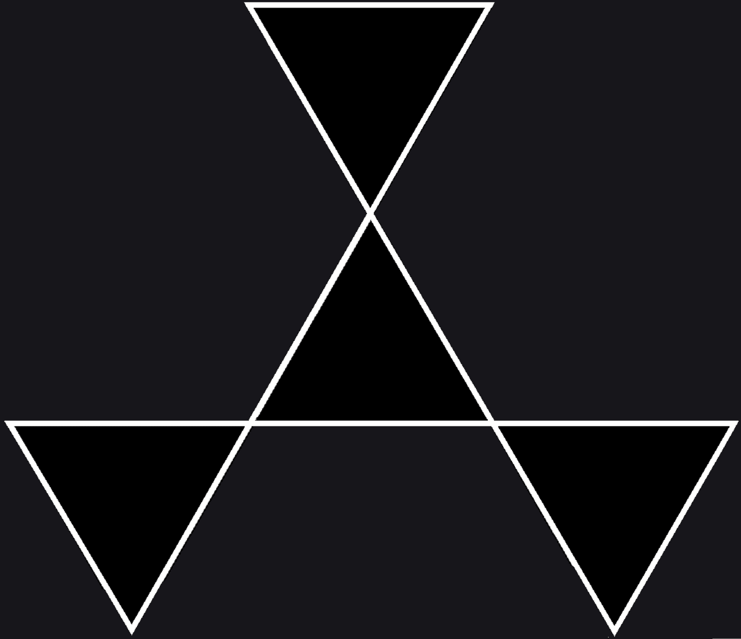 The idea can be conveyed symbolically by the diagram below, which pictures the triangular formation and the mode of a dual growth or progression and expansion of the network because, starting with the initial triangle, two points only are left for the processes of extension.